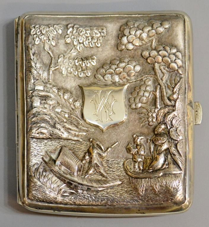 CHINESE EXPORT REPOUSSE SILVER CIGARETTE BOX