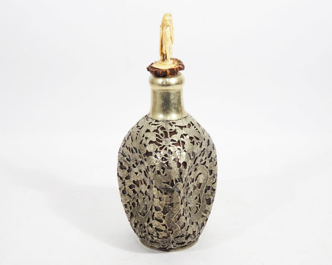 Chinese Export Silver Overlay Glass Decanter
