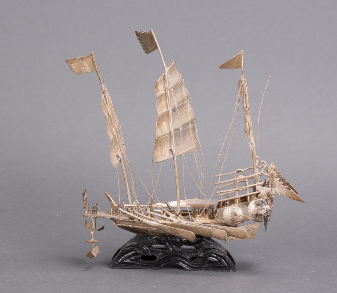 Four-Sail Gaff-Rigged Racing Pond YachtFeb 26, 2026Dutch Silver Miniature Sail Ship 144gFeb 25, 2026An Exquisite Gilt Silver Sailboat OrnamentMar 13, 2026Vintage Silver Plated S.Maria Model Sailboat5 days LeftNERESHEIMER & SOHNE GERMAN SILVER NEF Hanau, Circa 1916 Approx. 32.2 troy oz.Feb 26, 2026A Qing Dynasty silver-gilt silk burnt blue inlaid jade sailing ship ornamentMar 07, 2026AN IRAQI SILVER AND NIELLO SILHOUETTE SCULPTURE OF A DHOW, 20TH CENTURYMar 06, 2026A LARGE SILVER NEF1 day LeftA sterling silver Mexican miniature ship modelFeb 24, 2026Silver filigree model of a sailing ship2 days LeftA SILVER BOAT-FORM ORNAMENTMar 07, 2026Chinese Monumental Etched Tessellated Bone Pleasure Boat, 20th C., H 39" W 15.5" L 50"5 days LeftVintage Painted Schooner Weathervane with Tin SailsFeb 28, 2026MODEL OF THE SHIP "ALICE" Early 20th Century Length 40".Feb 26, 2026Magnificent Gotheborg Wooden Model Ship15 hrs LeftA Museum Quality 19th C. Viennese Silver Enamel Jeweled Miniature Ship5 days Left