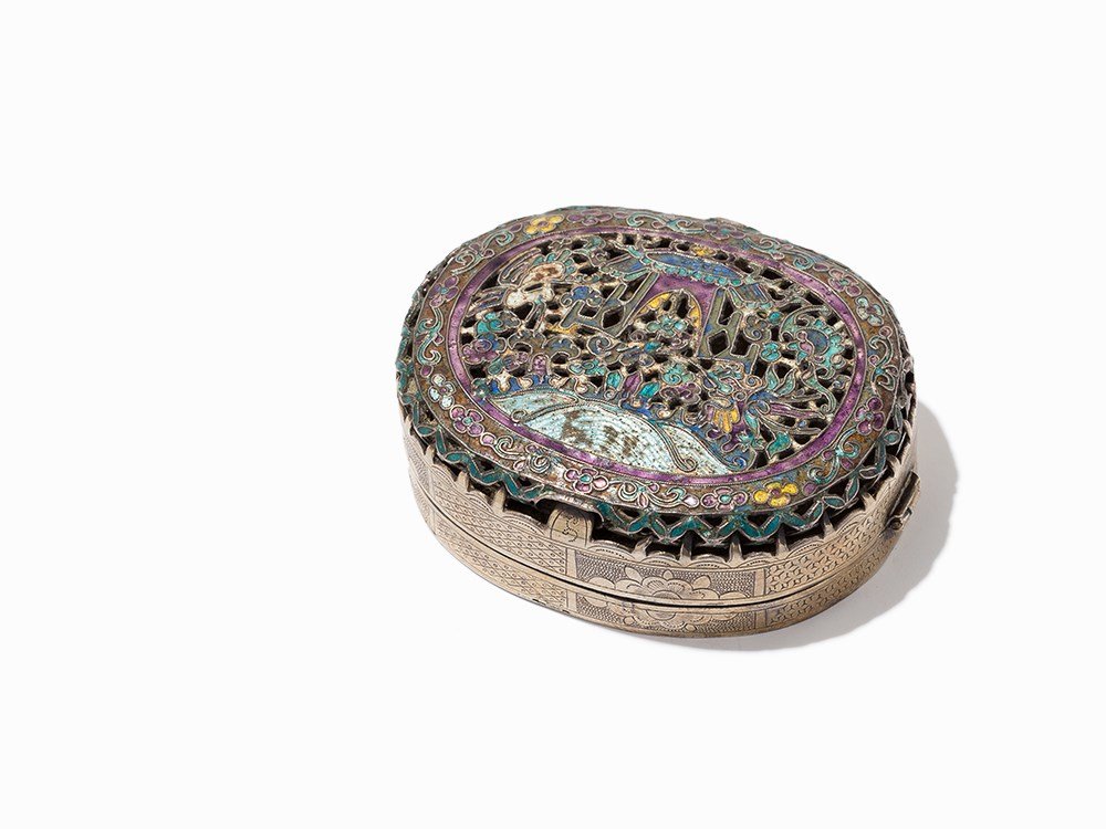 Antique Chinese Repouse Silver & Cloisonne Enamel BoxFeb 26, 2026Chinese Porcelain and Metal Trinket Box7 days LeftA Qing Dynasty copper gilt inlaid enamel longevity pattern incense boxMar 07, 2026Antique Chinese Enamel BoxFeb 27, 2026Vintage Chinese Round BoxMar 01, 2026A Qing Dynasty Hetian jade-inlaid copper gilt baked blue pattern printing clay boxMar 14, 2026A Qing Dynasty copper gilt cloisonné entwined lotus pattern lid boxMar 07, 2026Large Antique Chinese Silver & Gilt Covered Box with Insert, Qing Dynasty2 days LeftA Qing Dynasty Qianlong copper gilt cloisonné inlaid jade fired blue treasure cover boxMar 14, 2026An Exquisite Gilt Bronze Dragon Pattern BoxMar 13, 2026Qing Jiaqing Period Gilt-Bronze Dragon-Pattern Round Box6 days LeftCHINESE CLOISONNE COVERED JAR WITH INSET CARVED HARDSTONE PLAQUE.5 days LeftVintage Russian Enameled Metal Trinket BoxFeb 28, 2026A Chinese gilt painted and lacquered box and cover5 days LeftA Qing Dynasty copper tire cloisonné enamel floral pattern lid boxMar 07, 2026A Qing Dynasty copper tire cloisonn é enamel floral cover boxMar 14, 2026