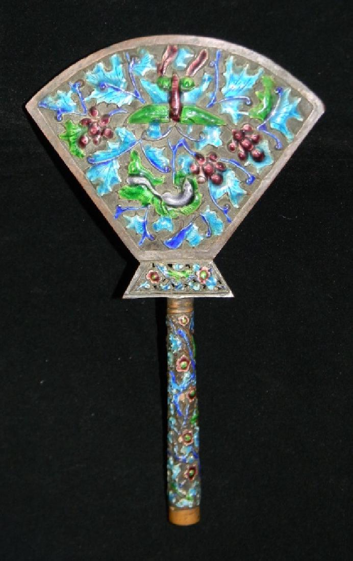 CHINESE FAN REPOUSSE ENAMEL HAND MIRROR