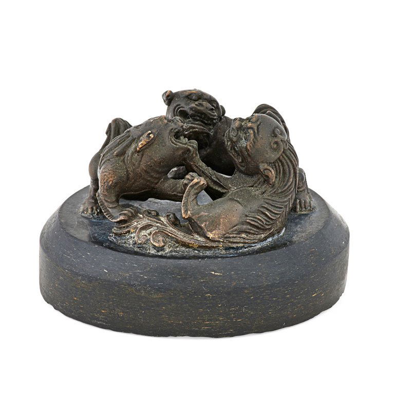 CHINESE FOO DOGS BRONZE MOUNTED PAPERWEIGHT