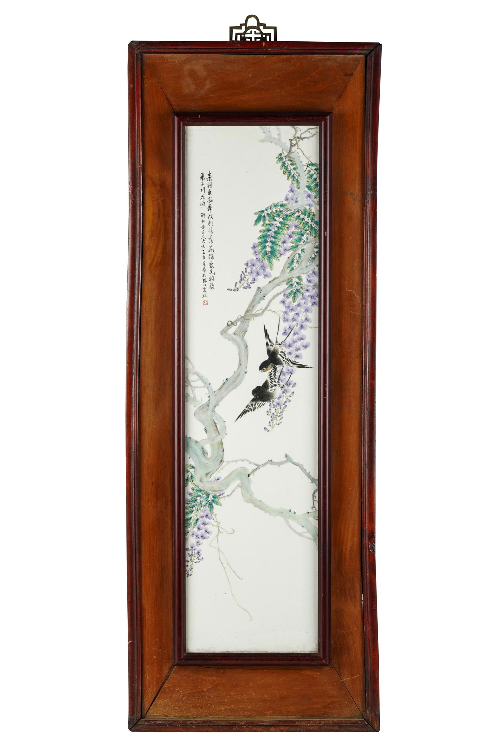 SoldA vintage chinese framed porcelain plaqueA vintage chinese framed porcelain plaque (28.8"x8") painted with birds and flowersSee Sold Price