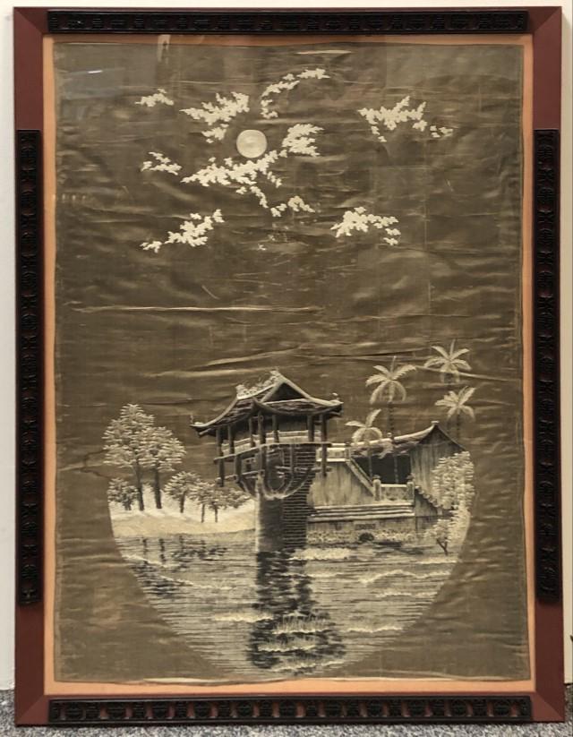 CHINESE FRAMED SILK LANDSCAPE WALL HANGING