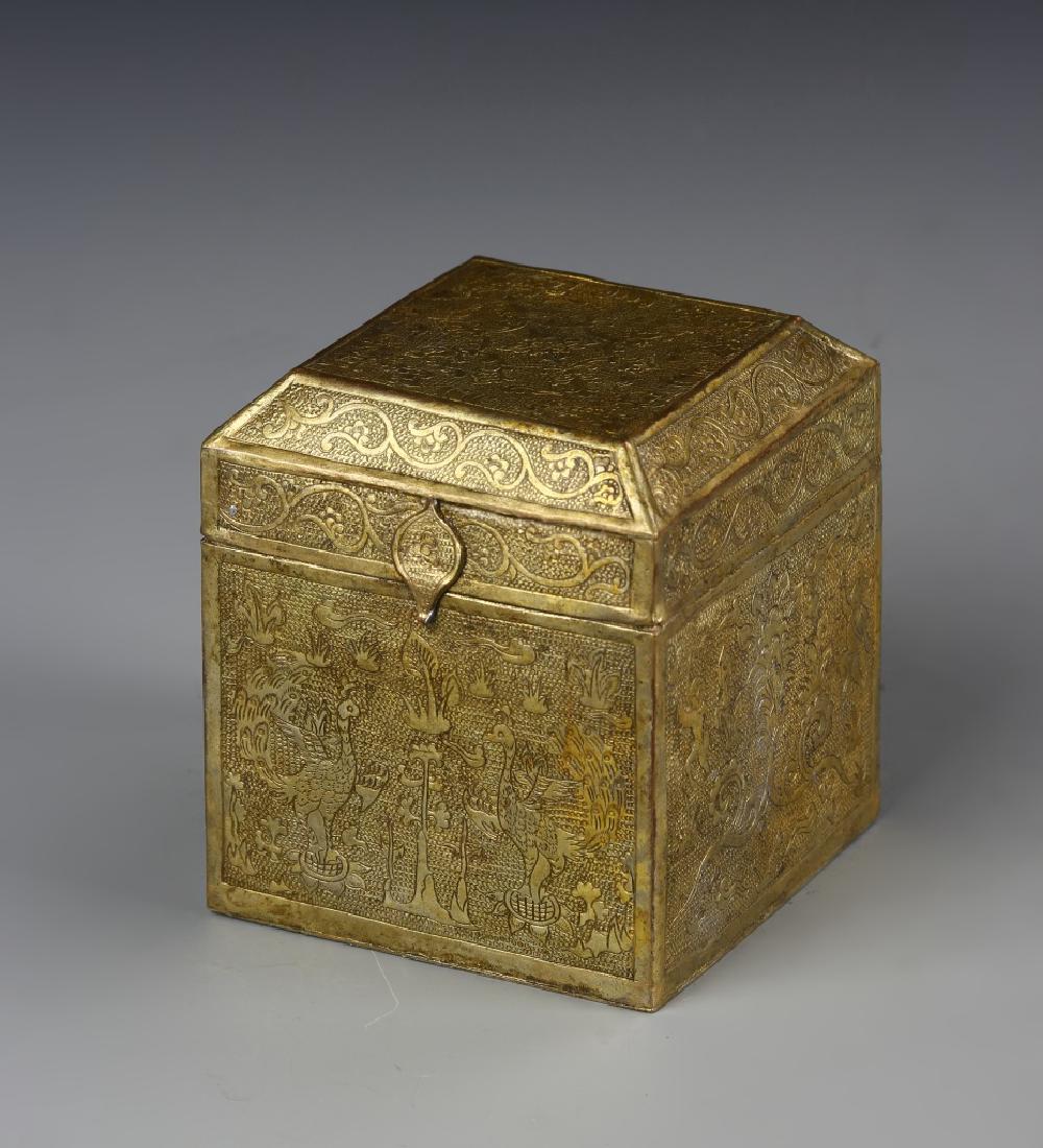 SoldA Chinese Gilt Bronze Box with LidA Chinese Gilt Bronze Box with Lid, Ht. 10cm, Wd. 16.5cm,See Sold Price