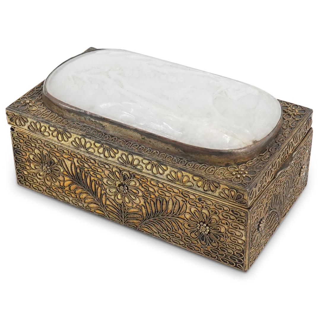 Antique Chinese Brass and Jade Stamp Box 20sA Ming Dynasty silver-gilt inlaid jade incense box7 days LeftPost Medieval Engraved Silver-Gilt Rock Crystal Set BoxMar 07, 2026A GILT SILVER FILIGREE ENAMELLED COVERED BOX INLAID WITH HETIAN JADEMar 05, 2026Republic Period Chinese Carved Jade & Bronze Box.7 days LeftA GILT SILVER FILIGREE ENAMELLED COVERED BOX INLAID WITH JADEITEMar 05, 2026A Qing Dynasty copper-gilt jade jewelry boxMar 07, 2026A silver-gilt floral lid box from the Qing DynastyMar 22, 2026A silver-gilt brushed Hetian jade lid box from the Qianlong period of the Qing DynastyMar 07, 2026A Exquisite Gilt Bronze Inlaid White Jade Lotus Pattern Flower and Bird Pattern BoxMar 18, 2026Chinese White Jade Inset Cloisonne and Enamel BoxMar 11, 2026A GREEN HARD STONE PAINTED BOX, INDIA, 19TH CENTURYMar 06, 2026Qing Jiaqing Period Gilt-Bronze Dragon-Pattern Round Box11 hrs LeftANTIQUE GLASS AND GILT FILIGREE ELABORATE EXCEPTIONAL JEWELRY CASKET BOX4 days LeftChinese Brass Champleve Enamel Trinket BoxRussian Silver Filigree Box4 days Left