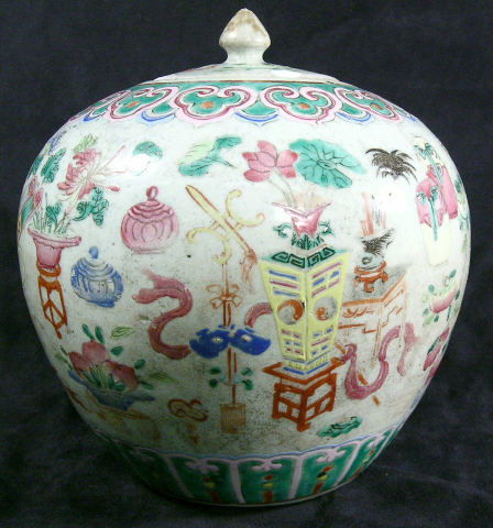 SoldLot of 10 Chinese and Japanese Ginger Jars10 Chinese and Japanese porcelain ginger jars. Celadon-painted ginger jar with illegible marks, red and white floral jar, lavender and floral jar, Satsuma jar marked on lid and bottom, pink and floralSee Sold Price