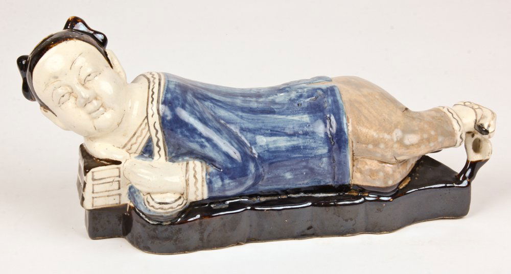 Chinese Glazed Ceramic Figural Pillow