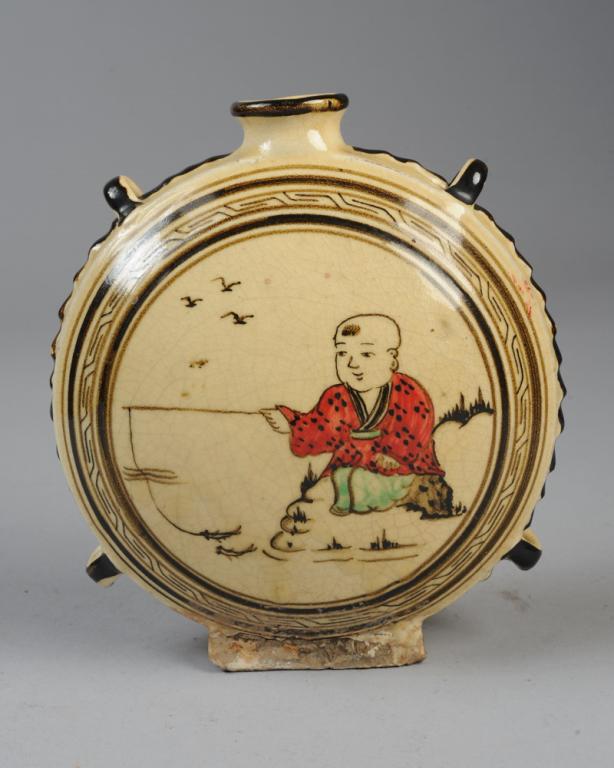 Former Yuan Dynasty egg-white glazed flat flask with applied floral and cloud dragon patternsFCL4.2(3)$6005 hrs Left