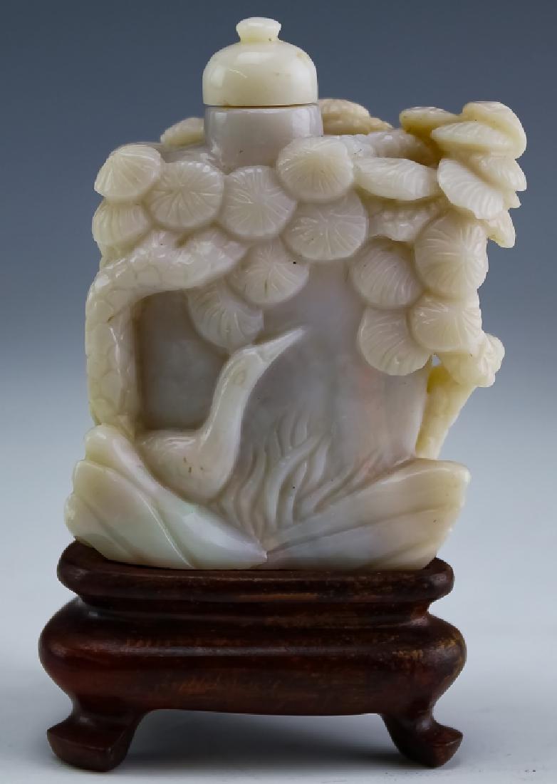 Chinese H-Carved Solid Opal Landscape Snuff Bottle