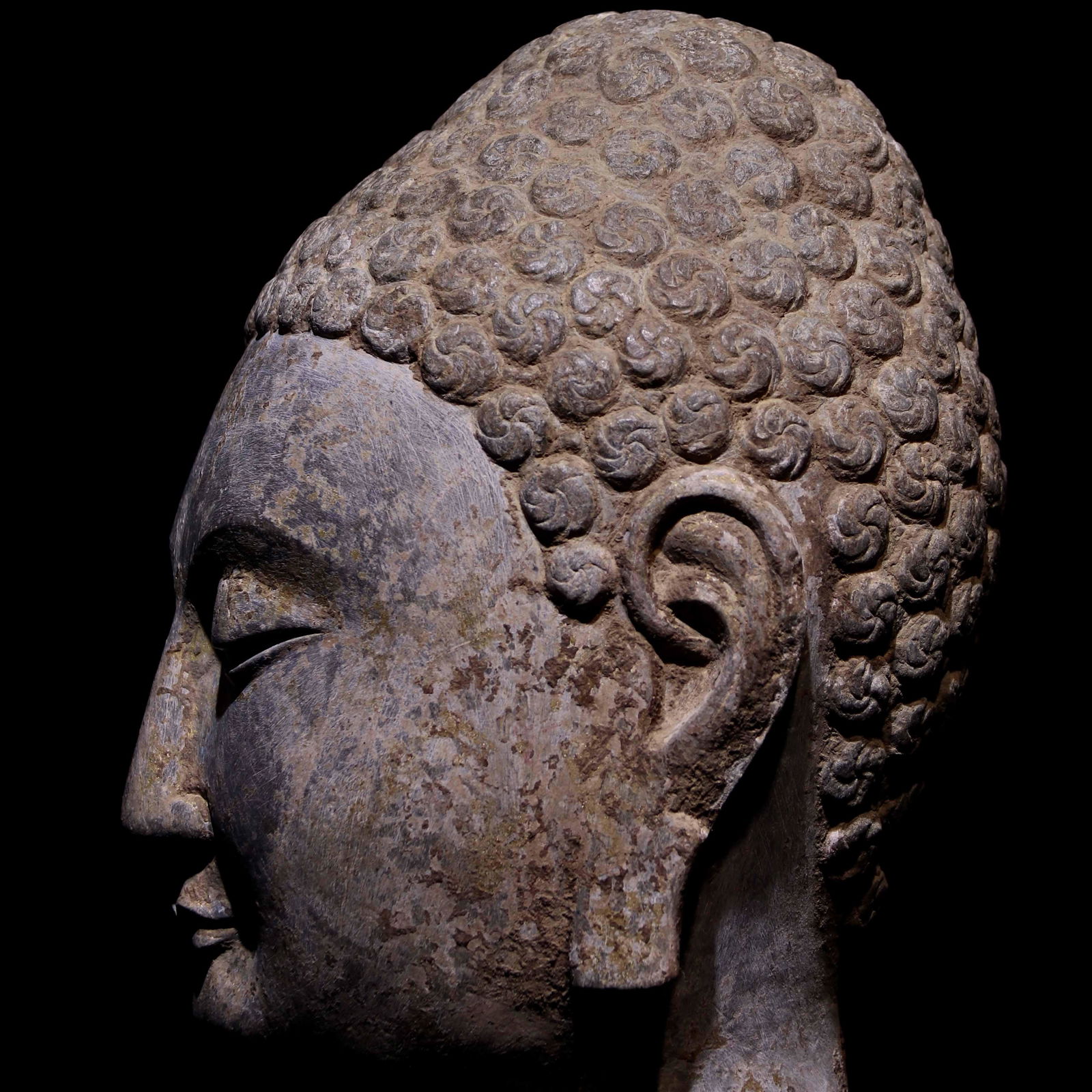 Chinese Han Dynasty bluestone buddha head