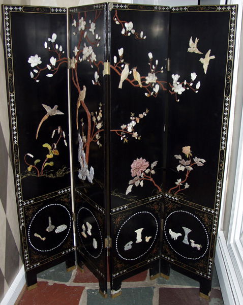 VINTAGE BLACK LACQUER & HARDSTONE FOUR PANEL SCREENChamberlain's Auction Galleries4.3(53)$3005 days Left