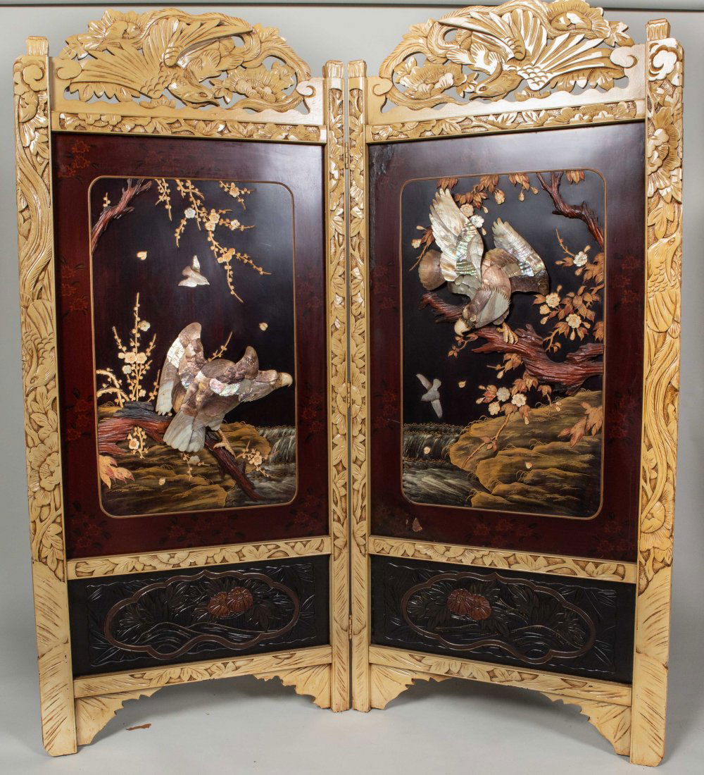 A HARDSTONES INLAID ROSEWOOD ZITAN TABLE SCREEN6 days LeftAN INSCRIBED 'LANTINGJI XU' FOUR-PANEL COROMANDEL LACQUER SCREENApr 17, 2026Pair Antique Japanese Meiji 2-Door Carved Hard Stone & Lacquer Wood Cabinets6 days LeftA Large, richly sculptured Japanese frame with an Eagle, Sculptured hardwood with bone andMar 31, 2026Antique Japanese Lacquer Cabinet on StandCHINESE 4-FOLD BLACK LACQUERED SCREENApr 09, 2026Chinese 4-Panel Lacquered Floor Screen.Apr 12, 2026Shibayama Art, Meiji Era, Ebonized Wood, Lacquer, Two Panel Screen, Japan, 1890sApr 30, 2026A Huge Flower silk gold-plated Inlaid White Jade Dragon and Phoenix Pattern Screen,Inlaid GemsApr 07, 2026A set of exquisite zitanwood painted four-bar hanging screens inlaid with gems and flowers andApr 04, 2026Zitan Wood Inlaid Shell Four PanelsApr 02, 2026An exquisite zitanwood cabinet inlaid with gems and patterns of fortune, wealth, longevity and5 days LeftOriental Black Lacquered & Paint Decorated Carved Soapstone & Bone Room DividerApr 06, 2026Gilded Mother-of-Pearl Floral & Bird Relief Panel6 days LeftChinese Carved Folding ScreenMar 31, 2026Chinese Black Lacquer & Hardstone Panels 2pcApr 02, 2026