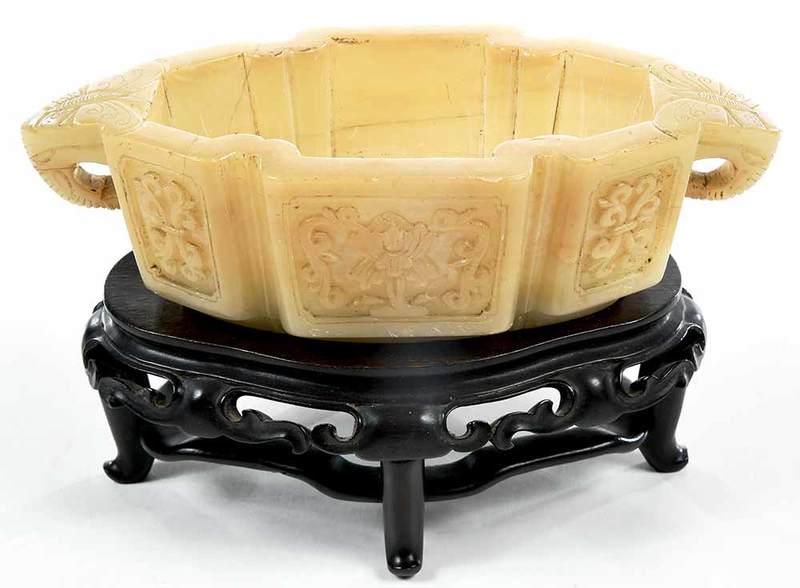 Chinese Jade Carved Lobed Jardiniere on Stand