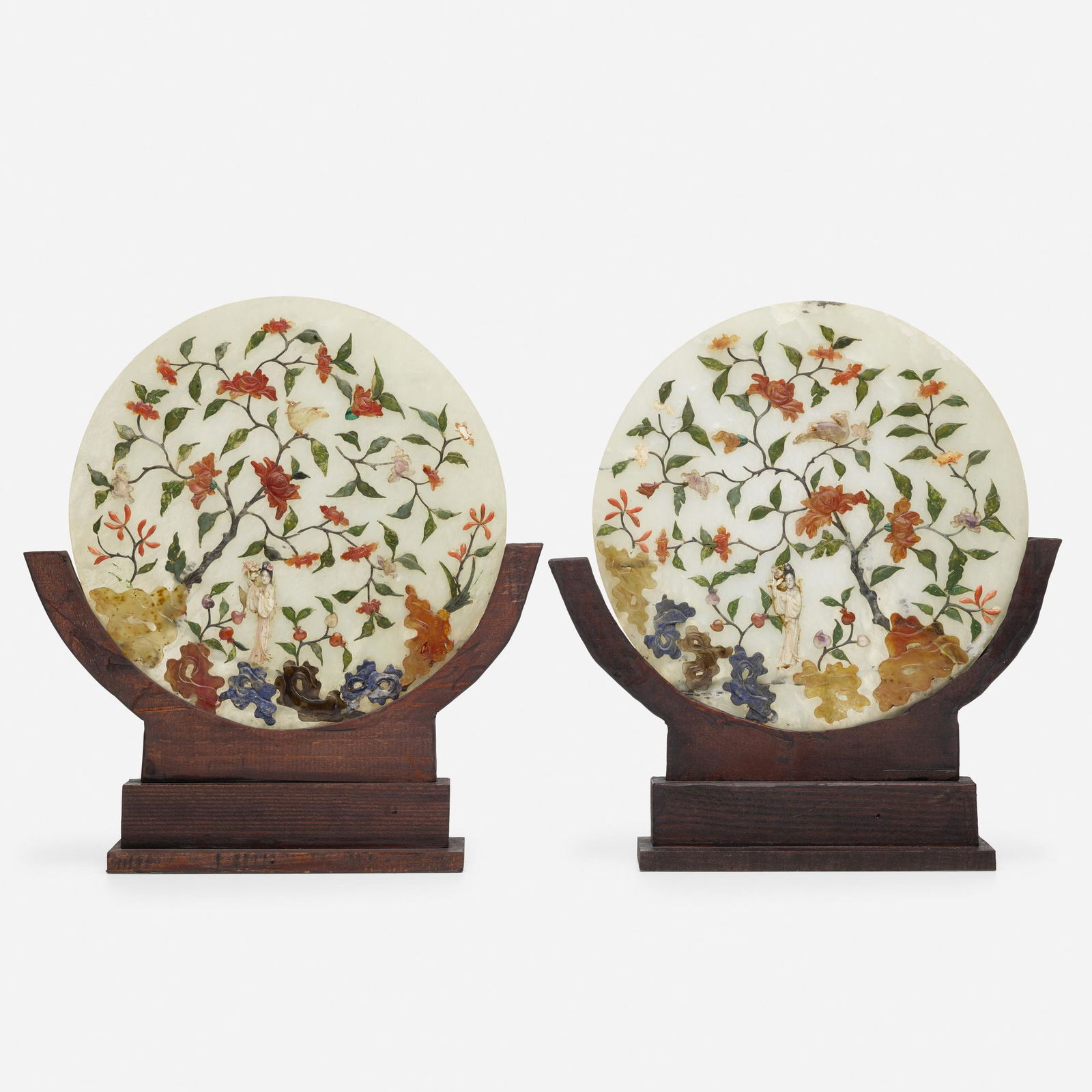 Chinese, hardstone inlay jade panels, pair