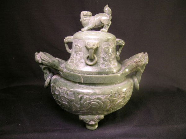 CHINESE HARDSTONE SERPENTINE JADE CENSOR W/ COVER