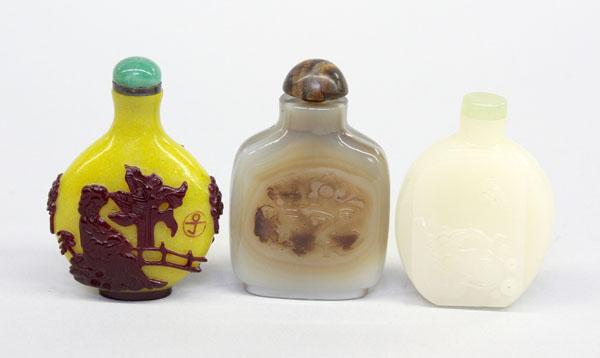 Three Glass Snuff Bottles, China, (3)Two Agate and One Chalcedony Snuff Bottles, China, (3)Two Agate and One Chalcedony Snuff Bottles, China, (3)A Group of Four Agate Snuff Bottles, China, (4)Two Agate and One Rock Crystal Snuff Bottles, China, (3)A Group of Three Carved Hardstone Snuff Bottles, China, (3)Three Overlay Glass Snuff Bottles, China, (3)Five Various Nephrite and Hardstone Bottles, China, (5)Three Agate Snuff Bottles, China, (3)Five Agate Snuff Bottles, China, (5)Group of Six Asian Style Carved Miniature Snuff Bottles4 days LeftFour Agate Snuff Bottles, China, (4)4 Chinese Stone, Jade & MOP Snuff BottlesFeb 26, 2026Three Red Overlay Glass Snuff Bottles, China, (3)Four Stone Snuff Bottles, China, (4)Six Glass Snuff Bottles, China, (6)