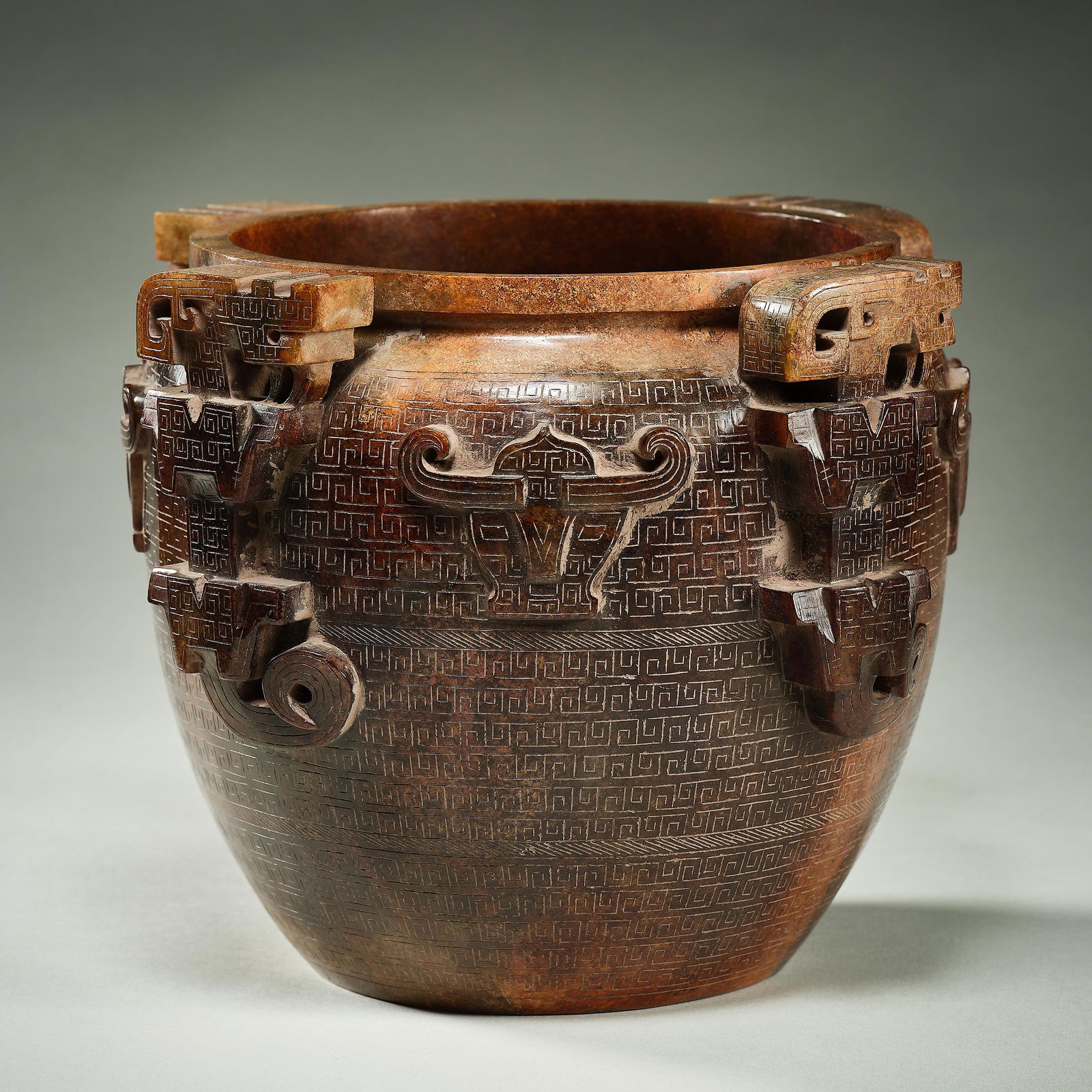 A ARCHAIC JADE ZUN RITUAL VESSEL WITH DRAGON MOTIFS