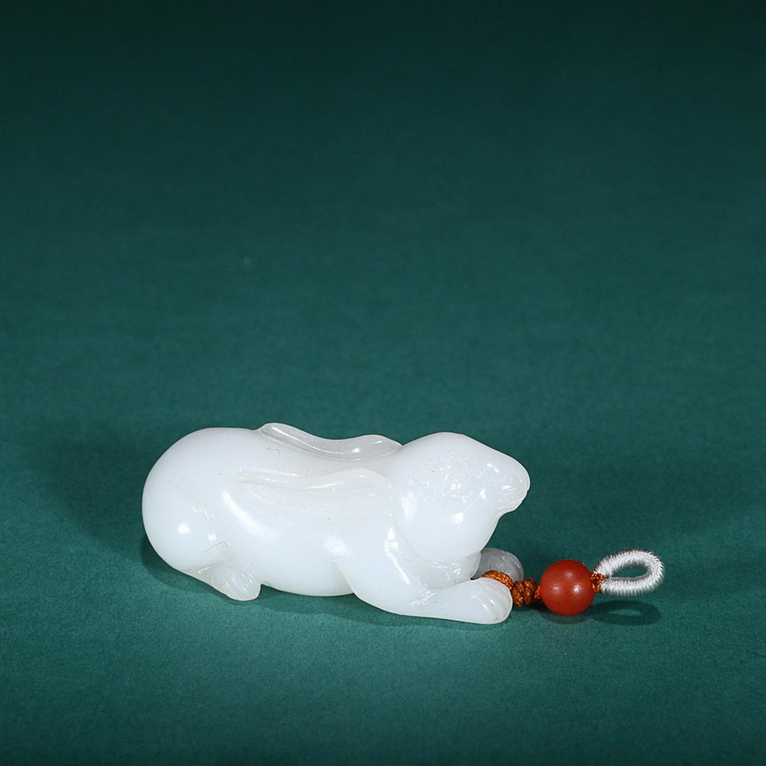 CHINESE HETIAN JADE PENDANT, 'RABBIT'