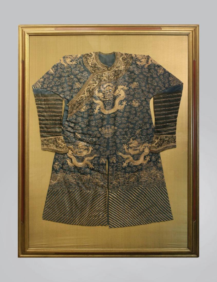 A Chinese embroidered silk blue-ground 'Dragons' robe, adapted into a lady's dress, 19th C. andRob Michiels Auctions4.3(33)€650Mar 18, 2026