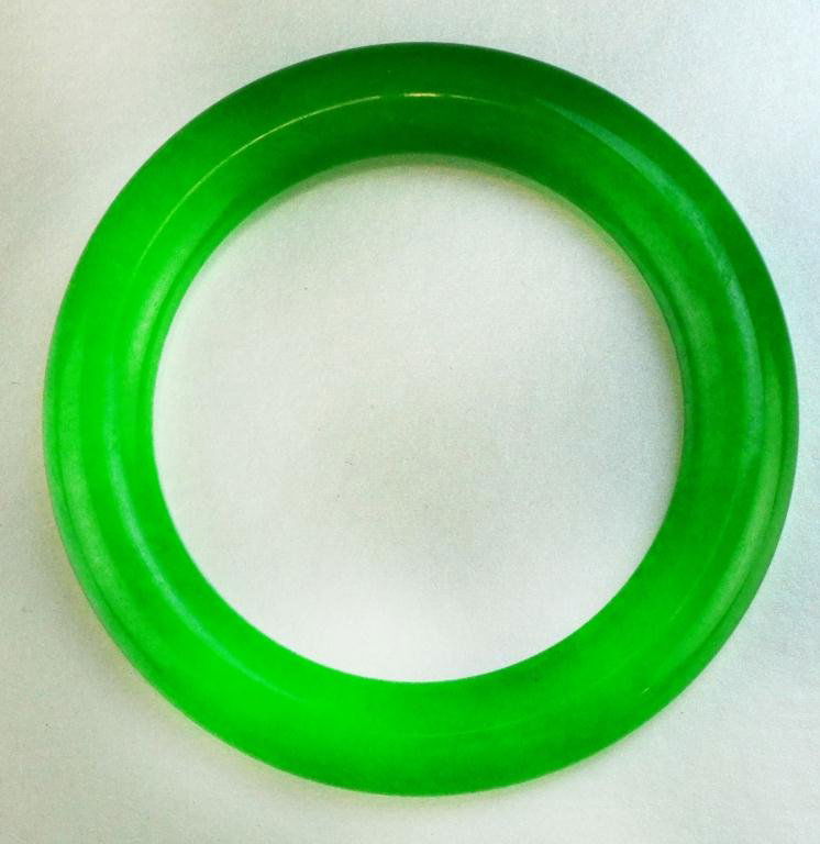 SoldCHINESE IMPERIAL GREEN JADE BANGLECHINESE IMPERIAL GREEN JADE BANGLE: Jade bangle in imperial green. Look carefully at the crystalline structure of the jade on dropbox:https://www.dropbox.com/sh/2mo7a9l1tq7k6jd/AACH1WH_PFJ0BT9JOh8OTpaSee Sold Price