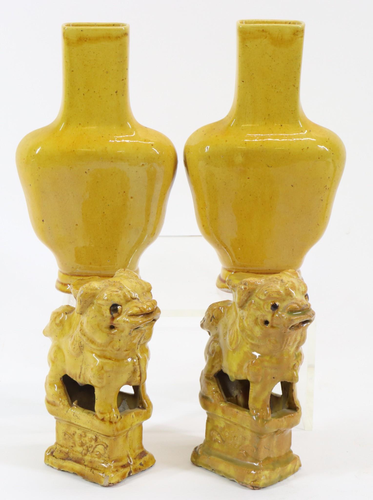 A pair of yellow-glazed Yuhuchun flower vases with relief carving of Qilin from the Hongzhi periodCJ Auction$6005 hrs Left