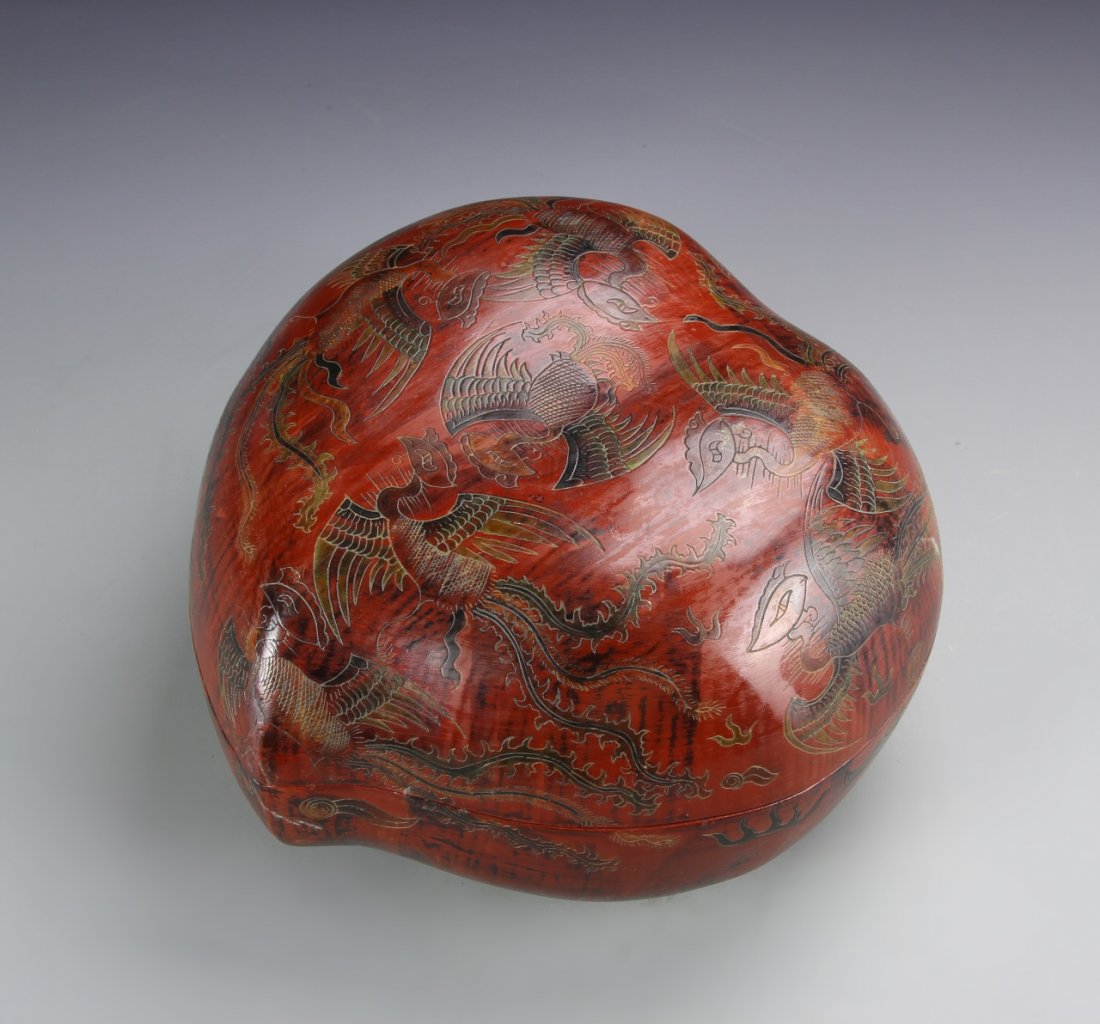Chinese Incised Phoenix Lacquer Box