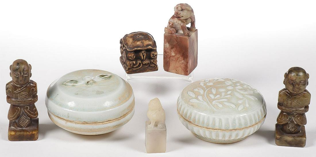 LOT ANTIQUE BOXES, COMPACT, ETC.3 days LeftGu Shoushan, Gu Yin, Tian Huang, etc. 12 o'clockMar 28, 2026Lot of Six Chinese Carved Jade Amulets5 days LeftCollector's Lot Of Asian Articles, Bowls, Boxes, RollerApr 14, 2026Lot of Hand Painted Porcelain Battersea & Dresser BoxesApr 06, 2026A Group of Thirteen Southeast Asian Silver Articles 19th-20th century6 days LeftA Group of Chinese White and Celadon Jade Plaques Ming Dynasty and later6 days LeftThree Chinese Hardstone Vessels with Chilong7 days LeftGroup of Chinese Jade and Hardstone Boxes20 hrs LeftGroup of Chinese Jade and Jadeite Carvings and Pendants.20 hrs LeftA Group of Small Chinese Jade Carvings Ming Dynasty and later5 days LeftA Group of Chinese Jade Plaques and Pendants Ming-Qing Dynasty and later6 days LeftA Group of Chinese Hardstone Carvings in the Scholarly Taste Qing Dynasty6 days LeftGroup of Five Chinese Hardstone Boxes7 days LeftAN EXTREMELY RARE SET OF SIX PAINTED LACQUER BOXES AND COVERS WITH SILVER EMBELLISHMENTS, HANApr 16, 2026Group of Chinese Rose Quartz and Purple Quartz Objects7 days Left