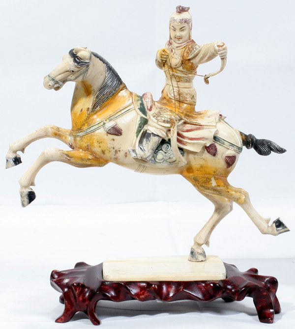 CHINESE IVORY MONGOLIAN EQUESTRIAN WARRIOR