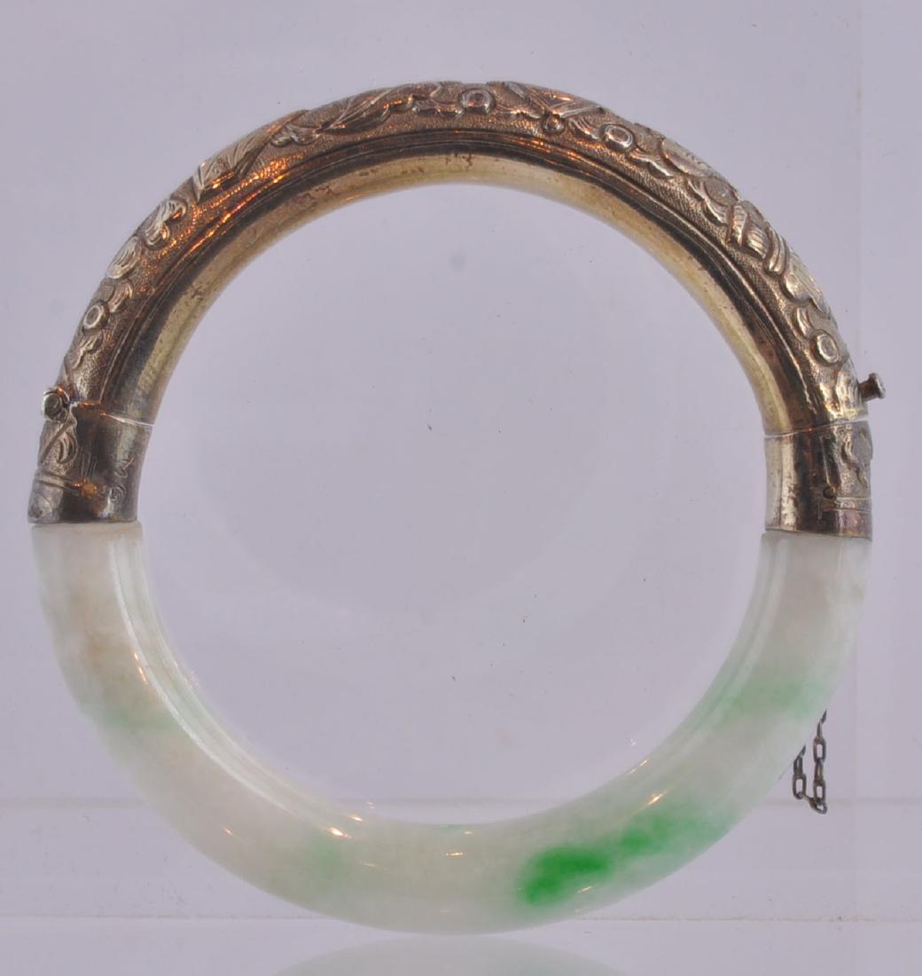 Chinese Jade & Silver Bangle Bracelet