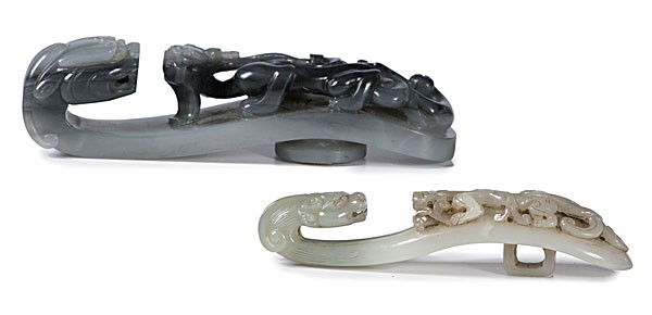 Sold(lot of 2) Chinese jade belt hooks(lot of 2) Chinese jade belt hooks. Qing dynasty, from 3.375" to 4.125" across.See Sold Price