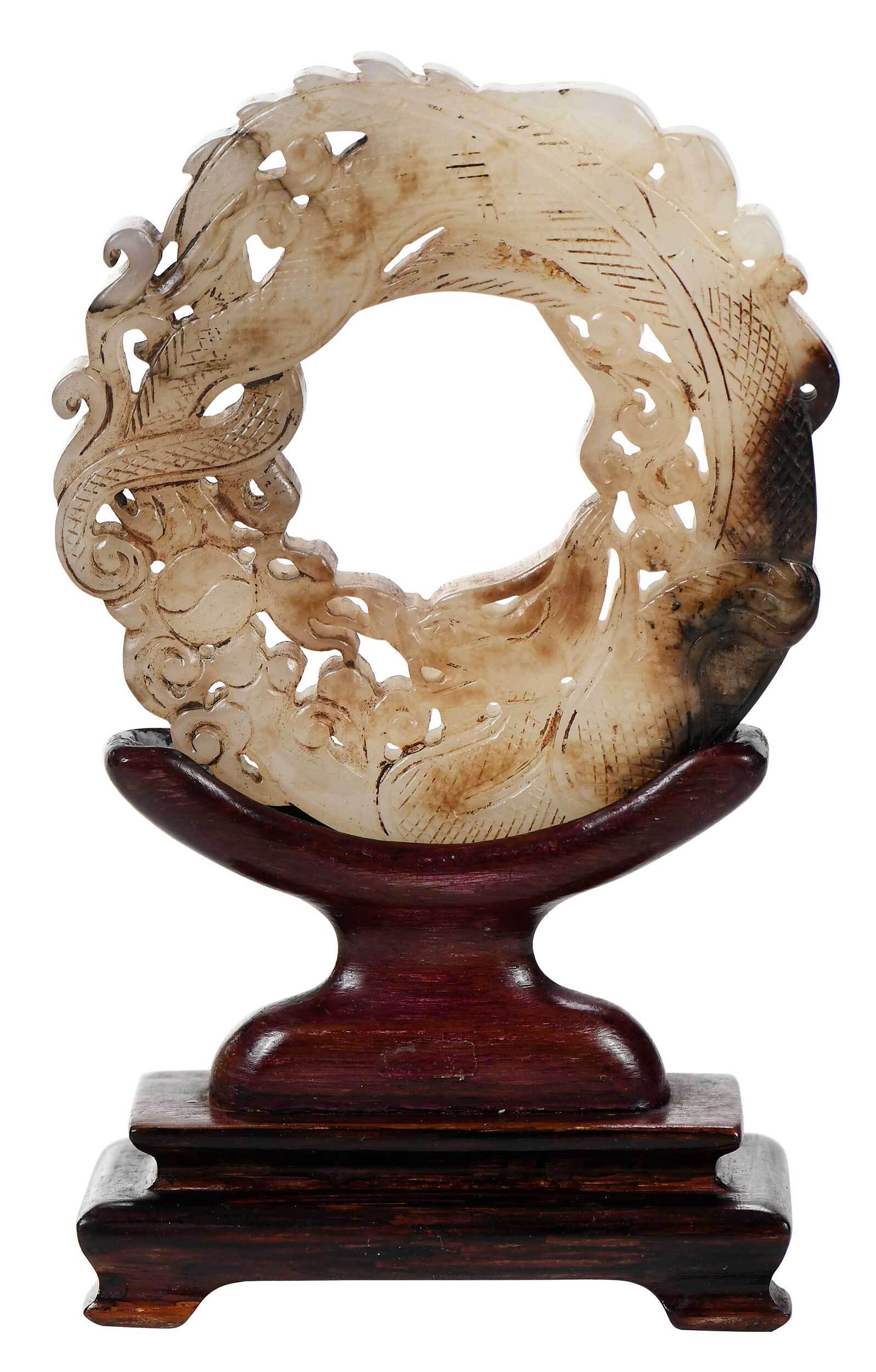 Chinese Jade Dragon Disk with Stand