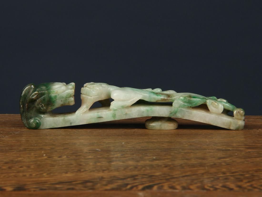 Chinese Jade Jadeite Dragon hook Statue Accessories