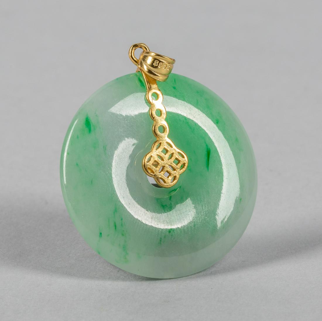 18K Gold Natural Jadeite Round Pendant with Green Hues