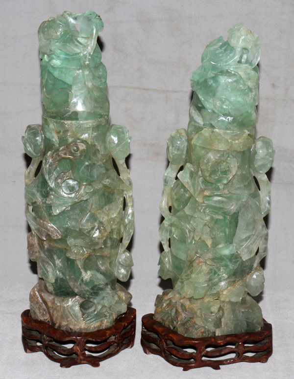 CHINESE JADE QUARTZ COVERED URNS, PAIR,