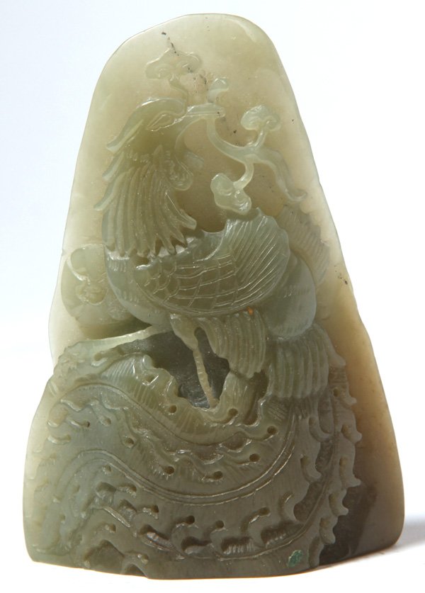 Sold19c Chinese Jade (Nephrite) SCHOLARÂ’S ROCKLate Qing Dynasty (late 19th century to 1911) Chinese scholarÂ’s rock in a form of a Jade (Nephrite) boulder with cut sides suggesting a dramatic narrow mountain with lush dense vegetation. ExcelleSee Sold Price