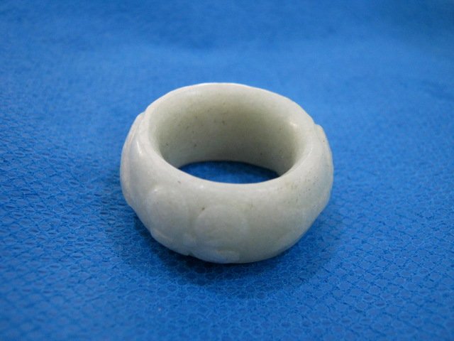 CHINESE JADE THUMB RING . FISH AND FLOWERS