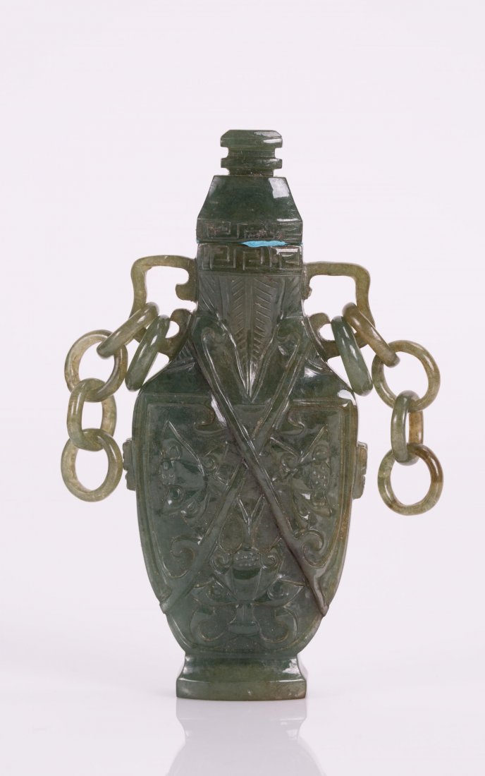 CHINESE JADEITE MINIATURE VASE WITH CHAINS