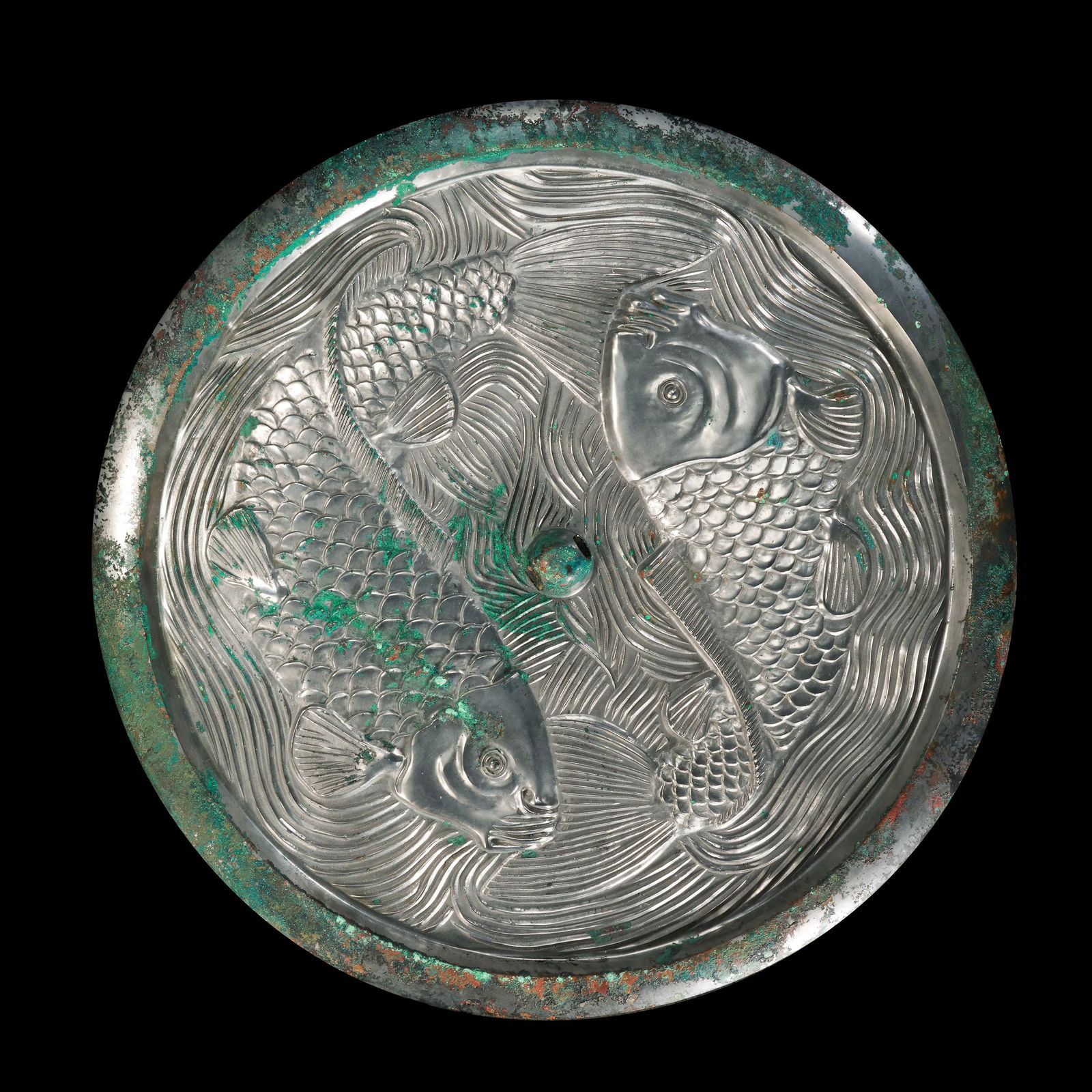 Chinese Jin Dynasty Bronze Mirror with Fish Pattern