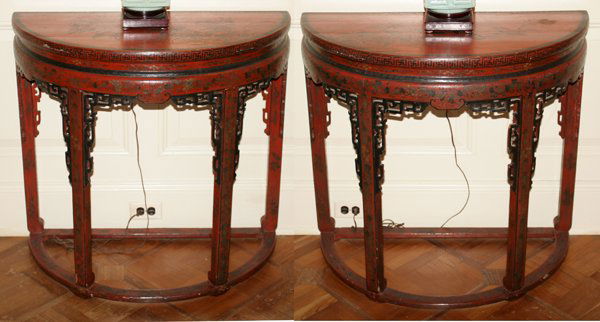 CHINESE LACQUER DEMILUNE CONSOLE TABLES ANTIQUE