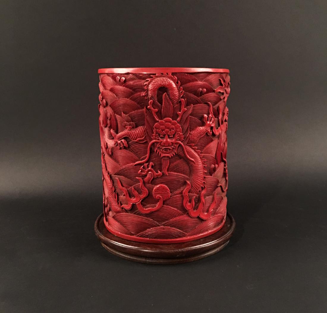 Chinese Lacquer Ware Carved 'Dragon' Brushpot