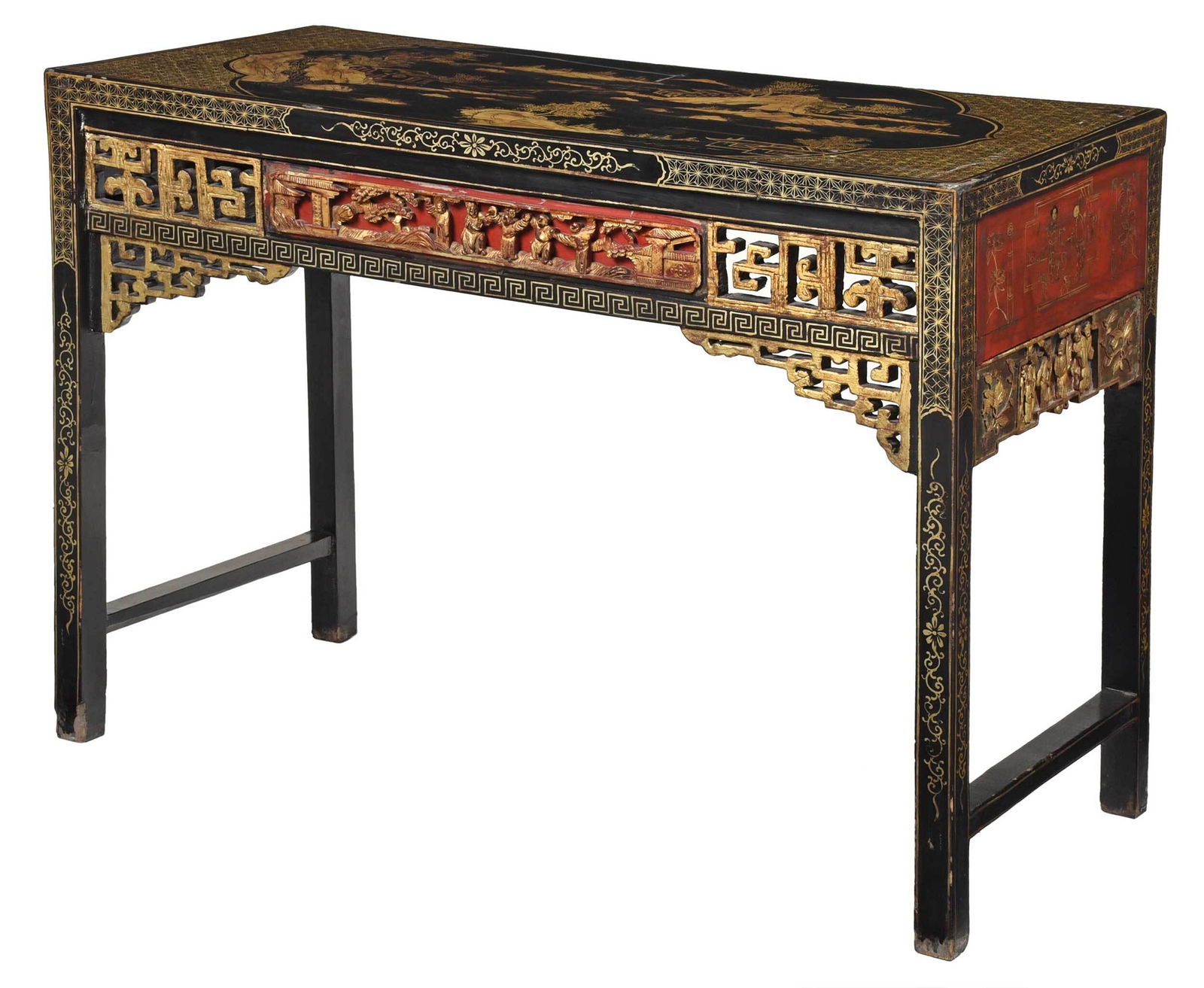 Chinese Lacquered, Gilt, and Polychromed Scroll Table