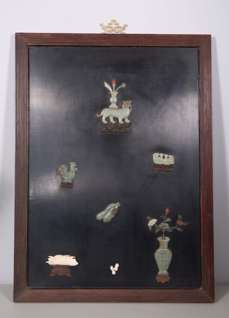 CHINESE LACQUERED PANEL WITH JADE INLAY
