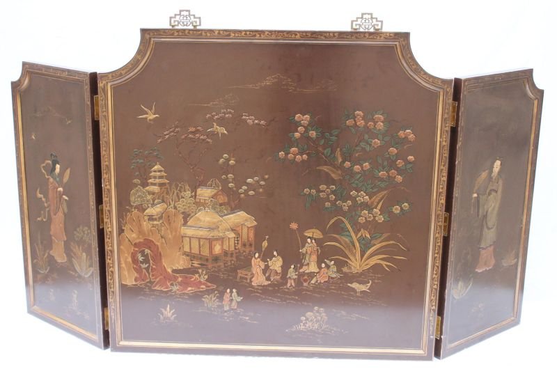Chinese lacquered trifold screen/wall hanging - 36"