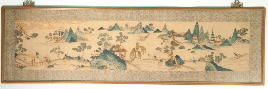 CHINESE HAND PAINTED SILK LARGE TABLE SCREEN2 days Left19th C. Chinese Longevity Floral Embroidery Panel1 day LeftChinese 19th C Silk Embroidered PanelA large and fine Chinese embroidered silk 'Xi Wang Mu and Immortals' panel, 19th C.Mar 18, 2026A large and fine Chinese embroidered silk 'Xi Wang Mu and Immortals' panel, 19th C.Mar 18, 2026A Chinese embroidered 'auspicious clouds' panel, early 19th centuryMar 22, 2026Chinese Ancient Guo Zhongshu Landscape Painting Silk ManuscriptMar 08, 2026An Exquisite Cloisonne Landscape Pattern Hanging PanelMar 14, 2026A Chinese blue-ground embroidered 'landscape' and 'figural' panel, 19th centuryMar 22, 202618th century Chinese silk embroidered panel. Flowers, butterflies, and peaches. Overall: 23.5in2 days LeftChinese Ancient Wang Meng Landscape Painting Silk ManuscriptMar 08, 2026A picture of Dai Jin in the Ming DynastyMar 14, 2026A Precious Animal and Landscape Pattern EmbroideryMar 20, 202619th C. Chinese Longevity Embroidery Panel1 day LeftChinese watercolor on silk panel "mountain landscape"3 days LeftA piece of Su embroidery of the Qing Dynasty was enrolledMar 14, 2026