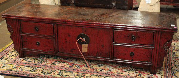 SoldLow wood Chinese cabinetLow wood Chinese cabinet.Seperation of the door and leg in front right corner,but should be repaired easily.See Sold Price