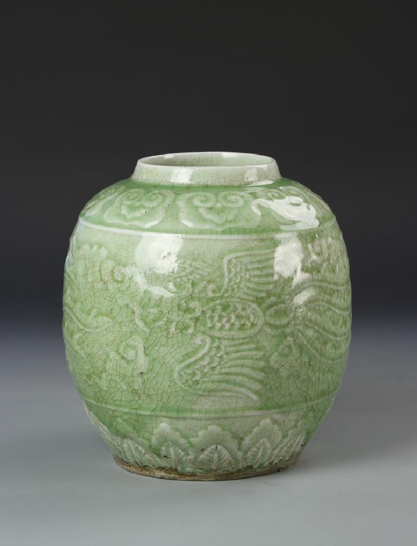 Antique Stoneware Small Green-Glazed Mataban Jar VaseChinese green glaze porcelain vase Qing dynasty Qianlong Mark & PeriodFeb 25, 2026Chinese Green-Glazed Porcelain Hex JarFeb 28, 2026An Exquisite Celadon Glazed JarMar 06, 2026A Exquisite Guan Glaze Celadon Glaze Ice Crackle Pattern VaseFeb 26, 2026An Exquisite Celadon Glazed JarMar 06, 2026A CELADON-GLAZED CRACKED-GLAZE CONG-FORM VASEFeb 21, 2026Chinese large light green porcelain jar6 days LeftChinese Celadon Crackle Glaze Vase with HandlesFeb 28, 2026Wucai porcelain vase with phoenix pattern, marked Chenghua Period Ming Dynasty. 7"Hx4"d5 days LeftMing Jiajing Sancai Glazed Large Jar with Openwork Dragon PanelsFeb 28, 2026Song Dynasty, Greenish-White Porcelain Pot with Incised Floral Decoration3 days LeftAn Exquisite Celadon Glazed Lotus Pattern VaseMar 11, 2026Northern Song Dynasty, Yue Kiln Celadon "Chuandai" Vase3 days LeftA Chinese Celadon Glazed Meiping Vase Yongzheng MarkFeb 28, 2026An Exquisite Celadon Glazed JarFeb 24, 2026