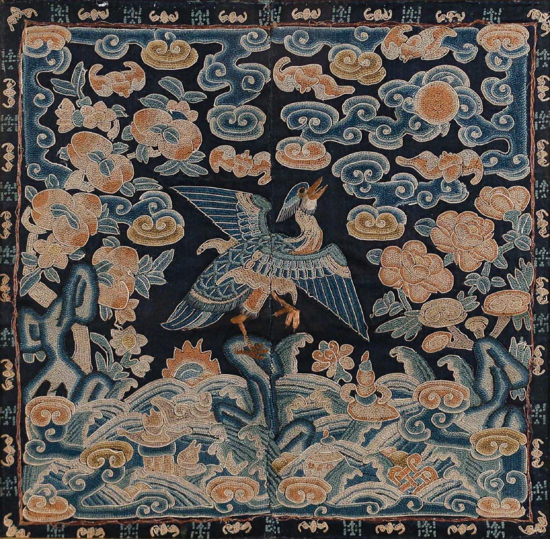 AN IMPERIAL 'TWO DRAGONS' SILK BROCADE FRAGMENT, MING DYNASTYMar 12, 2026Chinese Qing Dynasty Embroidered Silk Rank Badge.Feb 28, 2026A Chinese Embroidered Civil Rank Badge with First-Rank Crane2 days LeftAn exquisite kesi of flowers and birdsMar 15, 2026An Exquisite Embroidery Crane Pattern Civil Official Rank BadgesMar 05, 2026Rank badge China, Qing dynasty, 19th century117 Lots AwayAn Antique Chinese Rank Badge2 days LeftA Fine Qing Dynasty Embroidered First-Rank Civil Badge (Buzi) with Coral Bead Sun,2 days LeftAntique Chinese Peking Bird Design Wool Rug 7'8" x 9'5"2 days LeftVintage Chinese Silk Embroidered Cloth With Tropical Birds and Swans in Golden LakeChinese Art Deco Style Handwoven Wool Rug, Ca. 1920, W 6' 2" L 8' 9"1 day LeftAn Exquisite Embroidery Kylin Pattern Civil Official Rank BadgesMar 11, 2026ANTIQUE CHINESE SILK RANK BADGE QING DYNASTY4 days LeftChinese Silk on Silk Heron Embroidery Mandarin Square, Ca. 1900, Dia. 16" Frame Size: H 22" W 21.75"9 hrs LeftAn Exquisite Embroidery Phoenix Pattern Civil Official Rank BadgesMar 05, 2026Li Long Bei Dragon Cover, Hainan Island, South China, Qing Period5 days Left