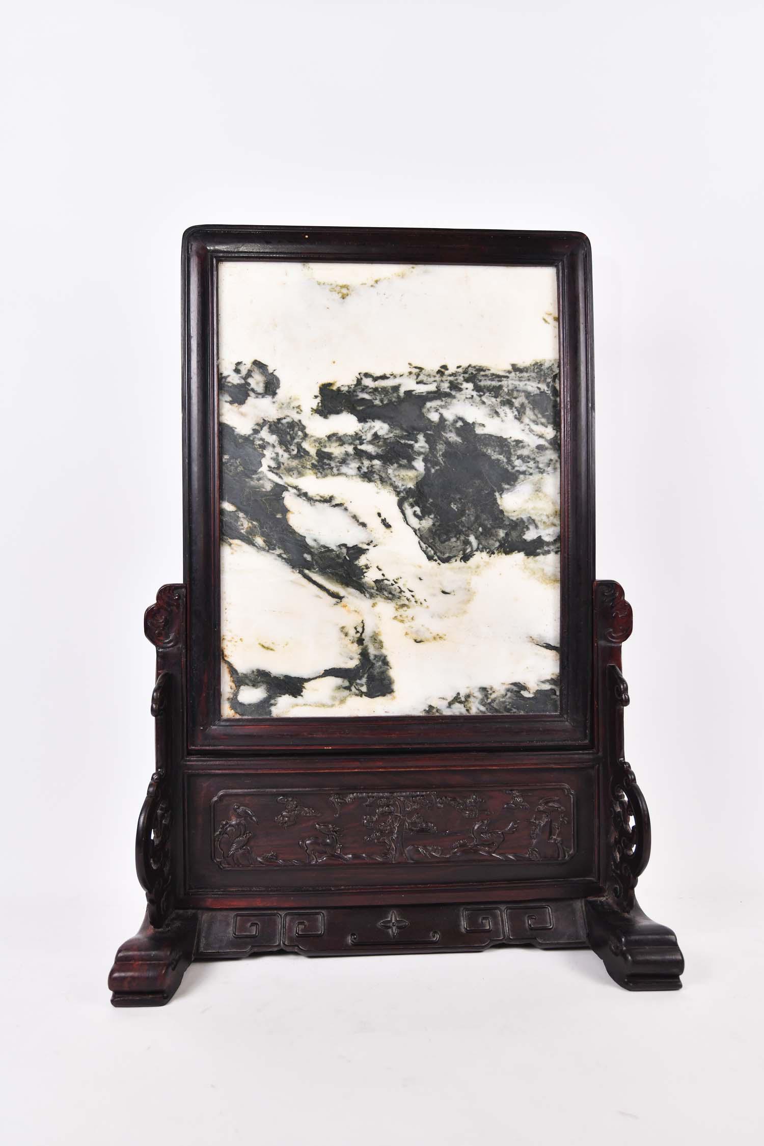 CHINESE MARBLE DREAM STONE ON STAND