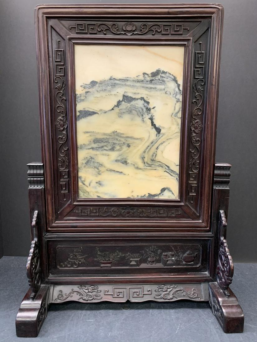 A Chinese Hardstone Box with InscriptionMar 11, 2026Chinese Table Screen w/ Marble Panel20 hrs LeftVintage Chinese Cinnebar Plaque with Wood Stand.1 day LeftA ZITAN WOOD INLAID WITH HETIAN JADE CARVED LANDSCAPE AND FIGURAL SCREEN PANELMar 07, 2026A ZITAN WOOD INLAID WITH HETIAN JADE CARVED FIGURAL NARRATIVE SCREEN PANELMar 14, 2026Table screen with jade relief, ChinaMar 13, 2026A Chinese Huanghuali Table Screen with Inset Marble Panel and Openwork Chilong Dragon CarvingsMar 08, 2026A Qing Dynasty rosewood inlaid marble screenMar 21, 2026A fine Chinese marble-topped hongmu demi-lune console table, 19th C.Mar 18, 2026A ZITAN SCREEN INLAID WITH CLOUD-SHAPED MARBLE PANEL877 Lots AwayAn Exquisite White Jade Landscape and Figure Pattern Table Screen,with Zitanwood BaseMar 11, 2026An Exquisite Agate Inlaid Gems Figure Pattern ScreenMar 11, 2026SMALL HUA LI WOOD INLAID MARBLE TALL SQUARE STAND3 days LeftA Qing Dynasty landscape figure rosewood inlaid jade fish tankMar 21, 2026A Qing Dynasty Hetian jade gilded landscape picture character picture poetry interstitial screenMar 28, 2026Large Antique Chinese Dali Marble Scholar's Stone on Stand